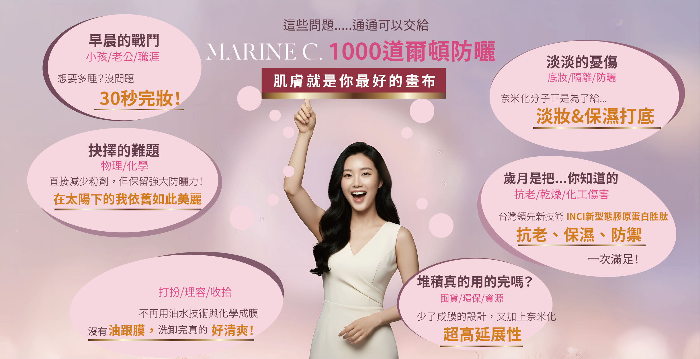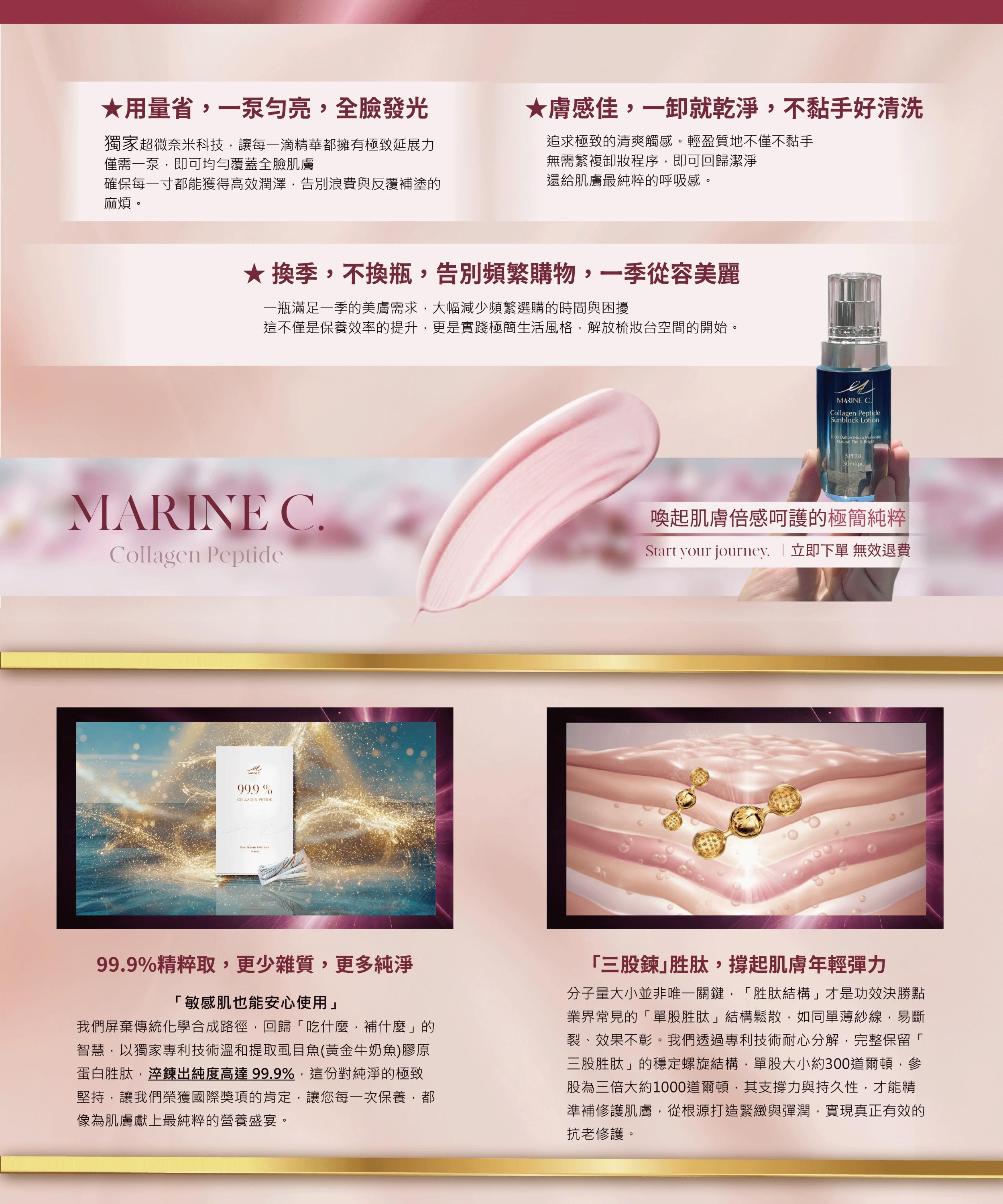 別人的防曬只會防,你的防曬偷偷幫你養!」防曬同時為肌膚補充膠原營養
